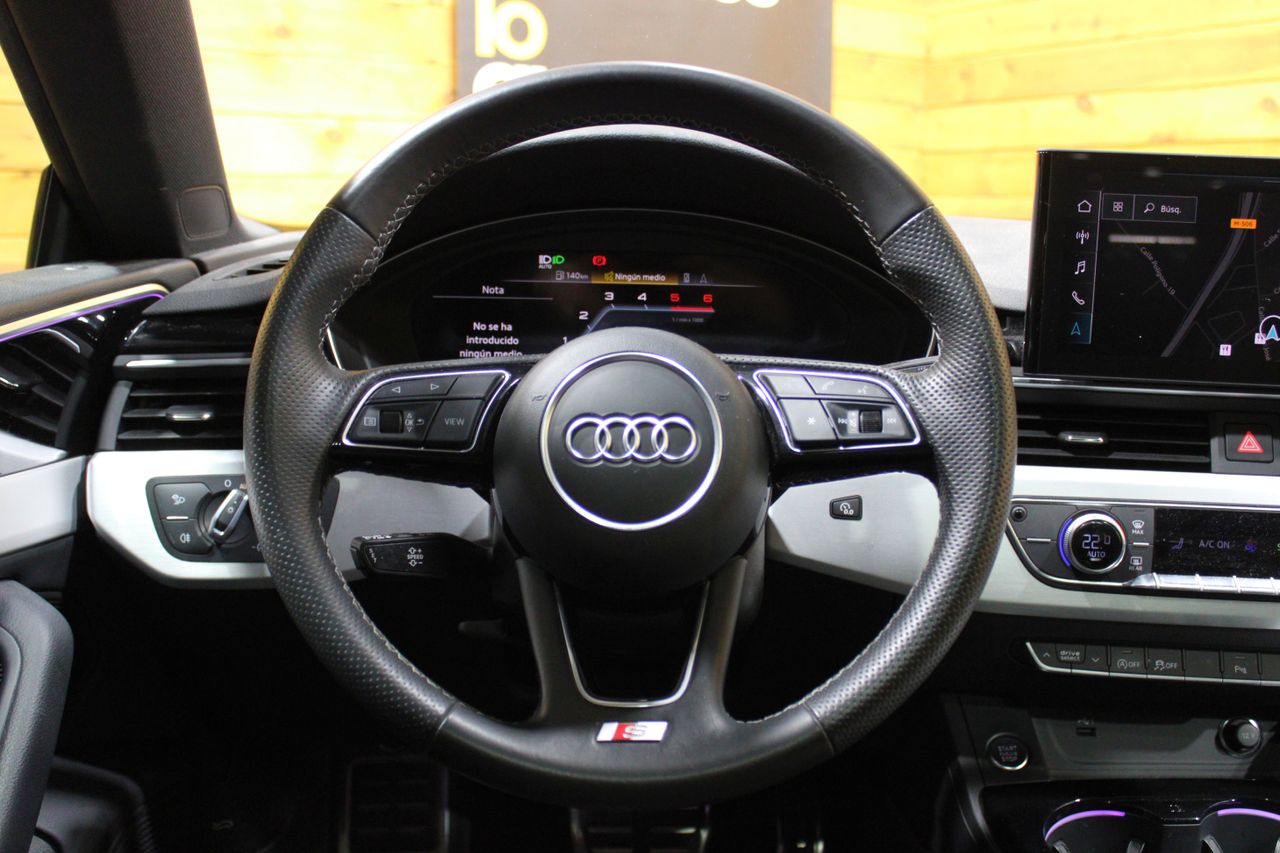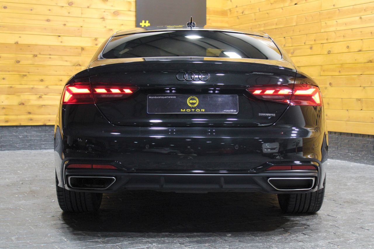 Ver vídeoAudi A5 Black Line 40 TDI S tronic SportbackRef. VER GALERÍA39.970€533€/mes¡Reserva ahora!Comparte vía:CaracterísticasMatriculación:29-06-2022Llantas:20Combustible:HíbridoDistribución:CorreaTracción:A las 4 RuedasMotorTipo4 CilindrosCaja de CambiosAutomáticaPotencia 204 CvAceleración 0-100km/h 7,4 Seg.Consumo medio 4.5 L.TracciónA las 4 RuedasEspacio interiorPlazas5Capacidad del maletero 465Disposición de los asientos2 + 3Dimensiones y PesoDimensiones 139 cm/ 184cm/ 476 CmPeso 1605 KgAudi A5202296.801 KmAutomáticoHíbridoSin entrada desde533€/mes.Calcula tu financiaciónEntrada inicial€Periodo de financiación añosFináncialo por 533€/mes durante 10 años*Cuota aproximada, puede variar en función de las condiciones particulares del solicitante.ReservarPrecio al contado inicial39.970 €Limpieza interior y exteriorGratisRevisión extra con mantenimiento antes de la entregaGratisGestión de financiaciónGratisUn año de garantía BasicGratisGarantía Premium+970Precio finalArray ( [0] => Garantía Premium [1] => 0 [2] => 1 [3] => 0 [4] => 1 [5] => 970 [6] => 0 ) 39.970 €Gastos de transferencia 490€No incluidosInfo. Garantía PremiumLlámanosReserva CocheEntréganos tu coche a cambio y disfruta del descuento de su tasación en el precio finalCoches similaresComparte vía:comparte|26.470€Audi A3 SportbackS line 35 TFSI 110kW (150CV)202252.061 KmManualGasolinaComparte vía:comparte|58.970€Audi Q7S line plus 55 TFSIe 380CV quattro tip202286.833 KmAutomáticoHíbrido E.Comparte vía:comparte|69.970€Audi RS3Sportback TFSI 294kW quattro S tron20235.398 KmAutomáticoGasolinaComparte vía:comparte|29.970€Audi Q3Advanced 35 TDI 110kW (150CV) S tronic2019103.902 KmAutomáticoDiesel
