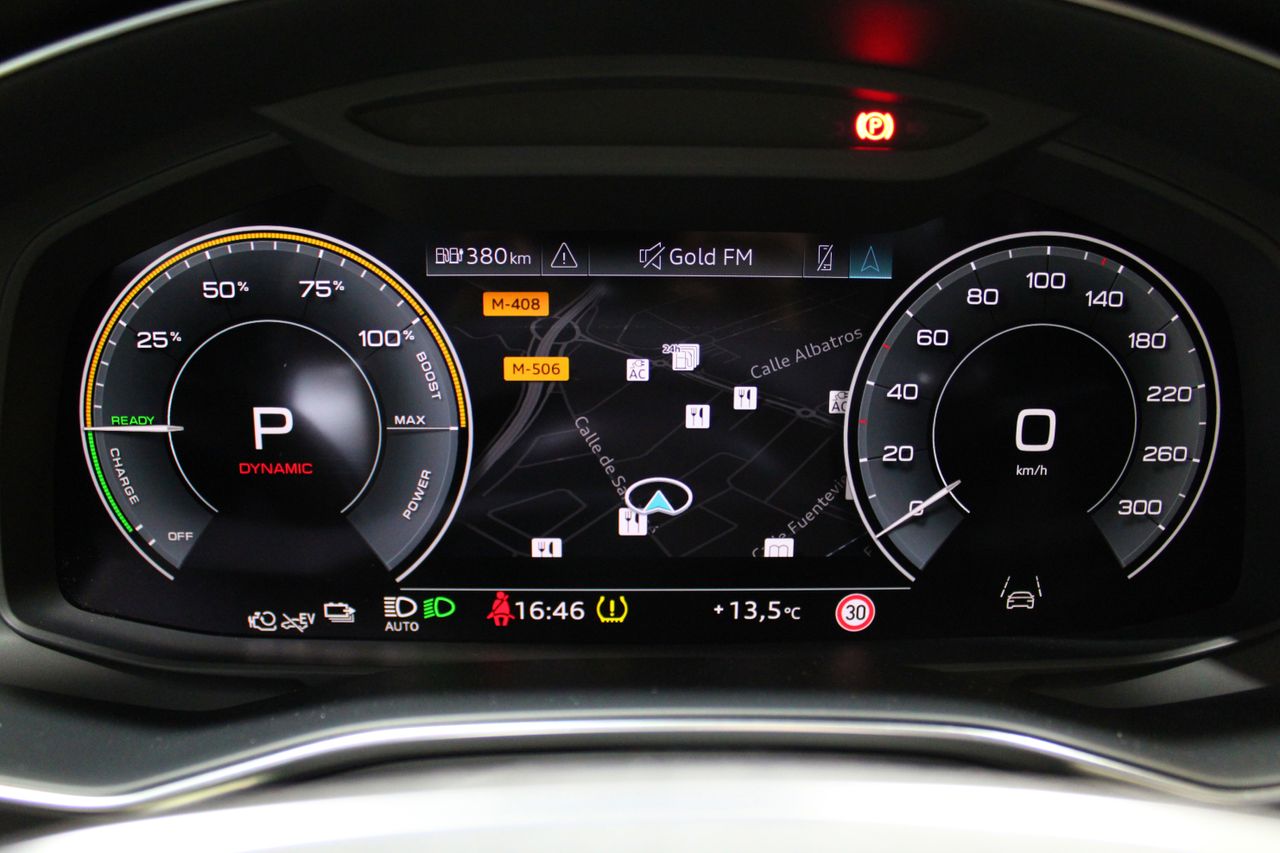 - Audi Virtual Cockpit: Cuadro de instrumentos digital de 12,3" con visualizaciones específicas PHEV.